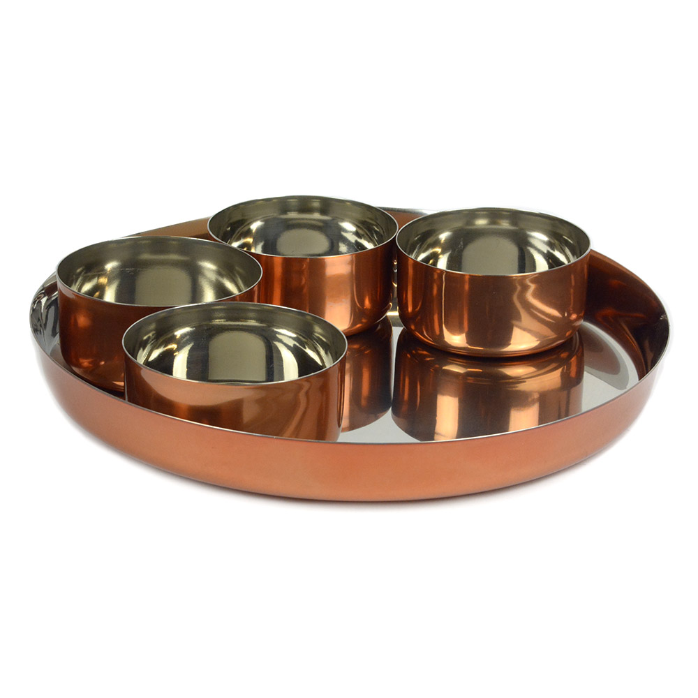 Polished copper with polished metal L 30.5cm x W 30.5cm x H 5.5cm