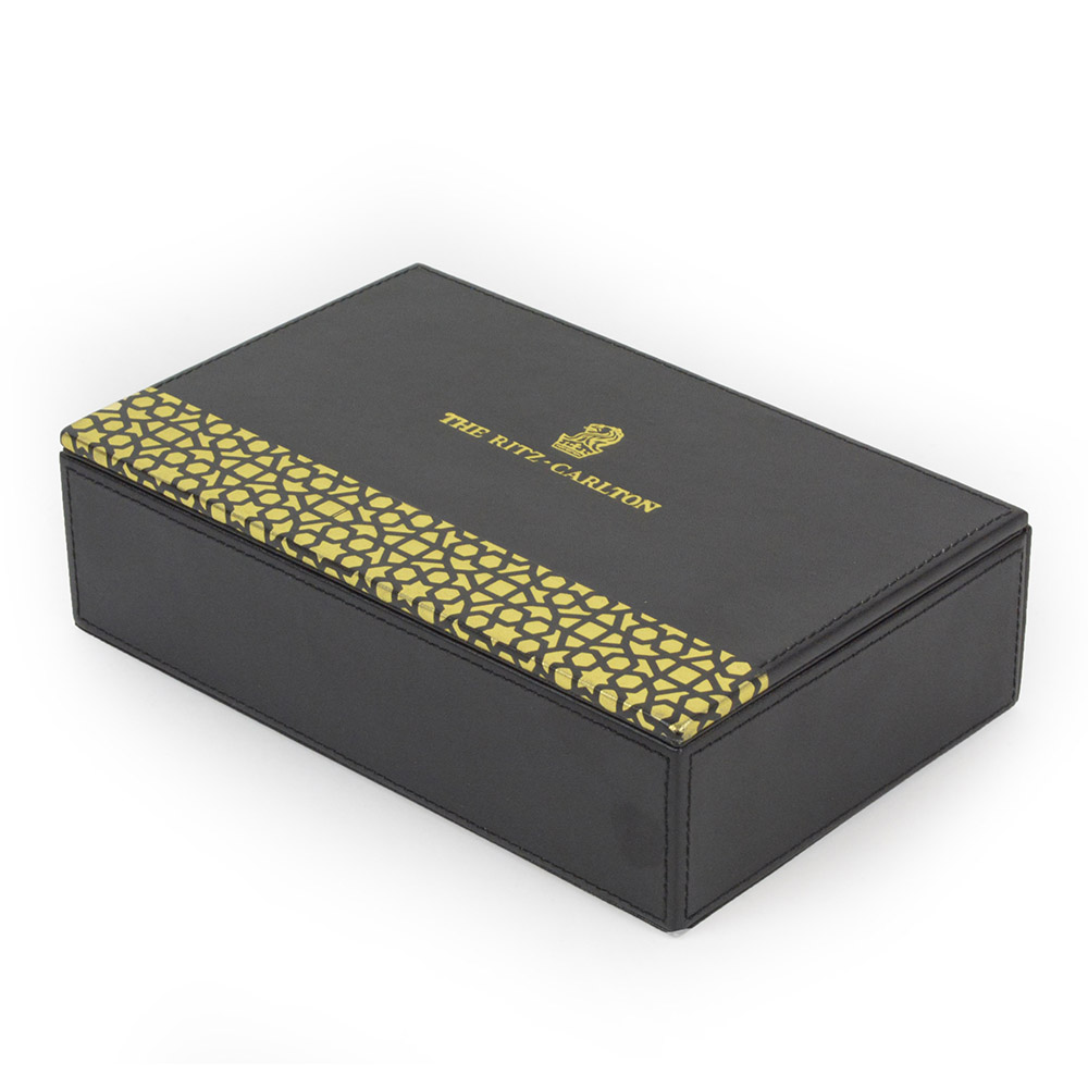 Black faux leather with gold foil pattern L 20.5cm x W 13cm x H 6cm