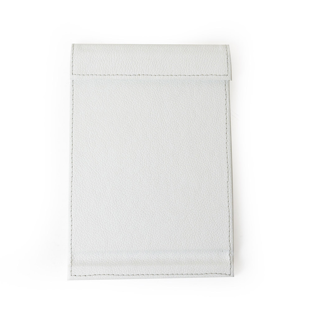 White faux leather with black stitching L 9cm x W 12cm x H 2cm