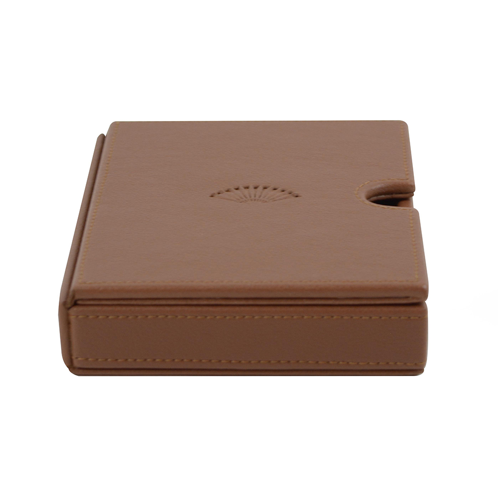 Tan faux leather with embossed logo L 17cm x W 13cm x H 3.5cm