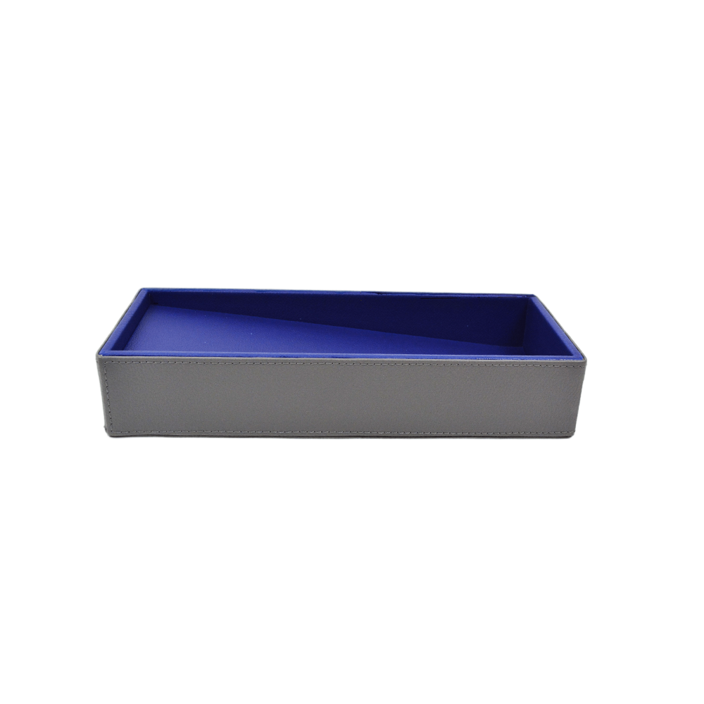Grey and blue faux leather – L 24.5cm x W 10cm x H 4.5cm, Inside Long Depth 3.5cm, Inside Short Depth 0.75cm