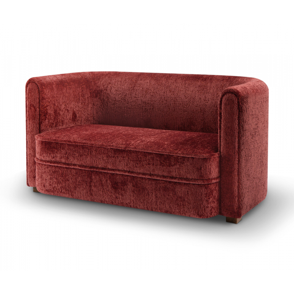 2-seater sofa with a rounded backrest and rich velvet upholstery in deep burgundy. Perfect for cozy corners or intimate lounge settings.